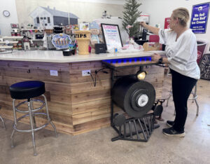As the store became a central hub, customers seeking financing for mowers often spent an extended time inside during the approval process. This sparked the idea to set up a small desk with a computer, along with coffee and sodas for patrons. Then Connie’s childhood memories helped shape the concept even further.